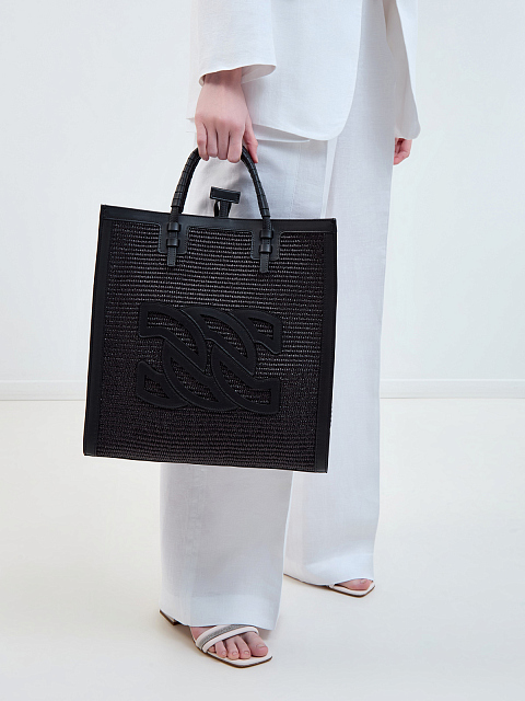 Тоут Beaurivage из плетеной рафии и кожи со съемным ремнем