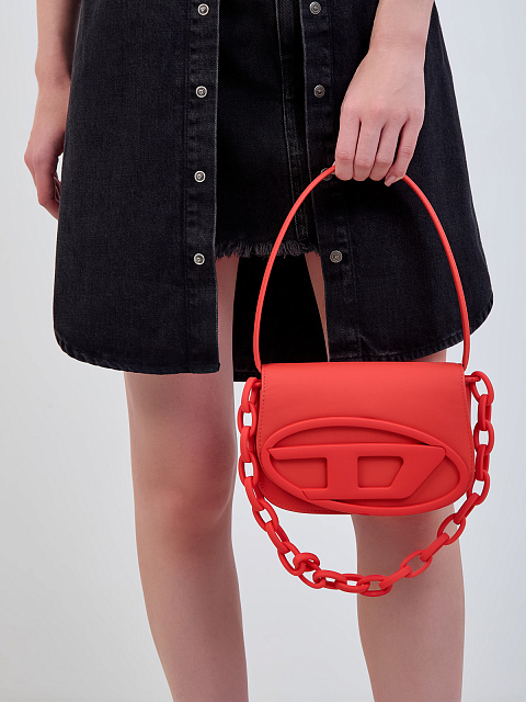 Сумка 1DR из матовой прорезиненной кожи с ремешком-цепочкой