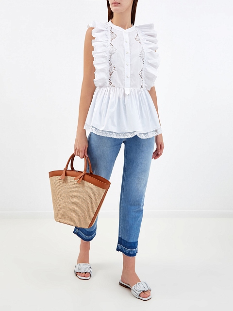 Сумка-тоут от Ermanno Firenze выполнена из плетеной рафии и дополнена отделкой из гладкой кожи в коричневом оттенке. Практичная модель с внутренним текстильным отделением и регулируемой кулиской станет идеальным завершением повседневных образов. Детали: съемный плечевой ремень, уплотненное дно.
