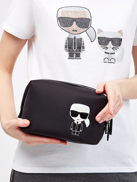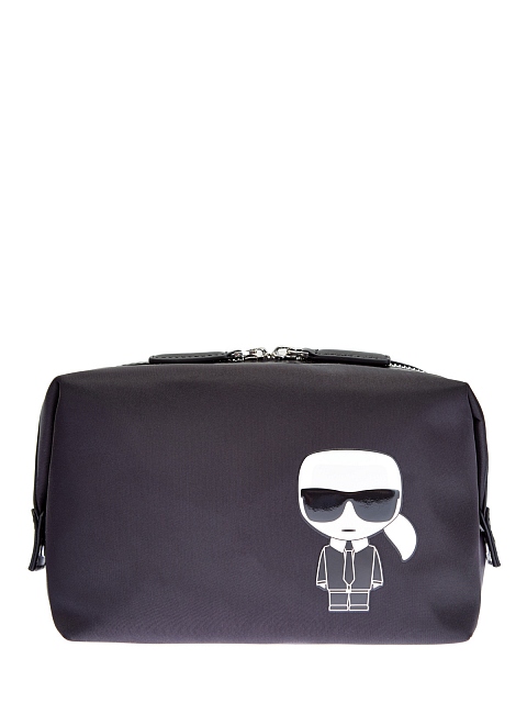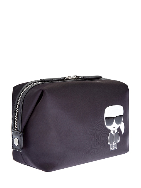 Косметичка из матового нейлона с аппликацией K/Ikonik и кожаной отделкой