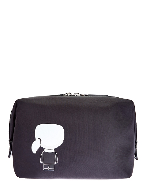 Стильная косметичка K/Ikonik от Karl Lagerfeld выполнена из прочного матового нейлона с внутренним набивным принтом. Вместительный аксессуар оснащен прорезным карманом и застежкой на молнию с двойным пуллером. Детали: отделка из кожи, логотип бренда.