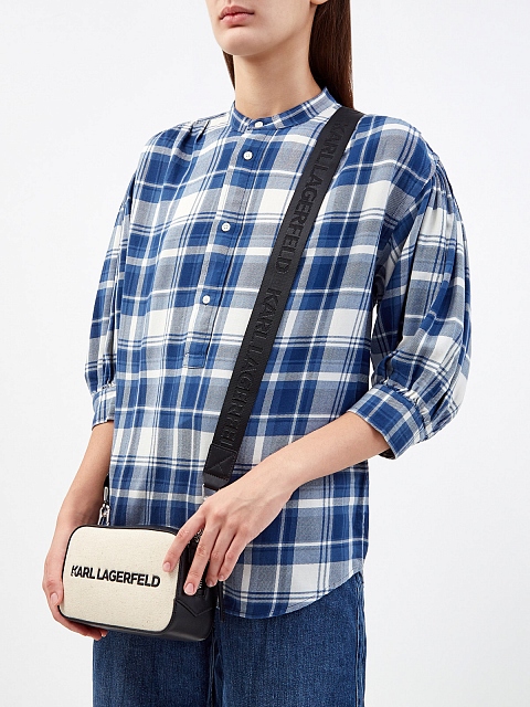 Элегантная сумка из коллекции K/Skuare от Karl Lagerfeld с конструкцией из хлопковой парусины, элегантными акцентами из черной кожи и плечевым ремнем из плетеной тесьмы. Фактурный логотип KARL завершает минималистичный дизайн. Детали: отделение с застежкой на молнию, съемный ремень на карабинах.