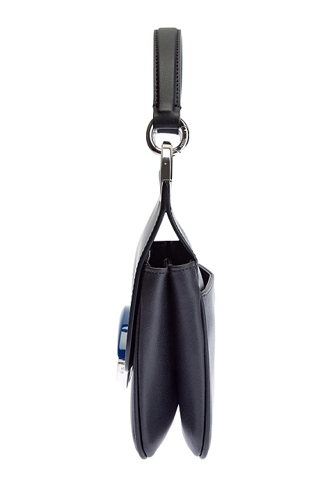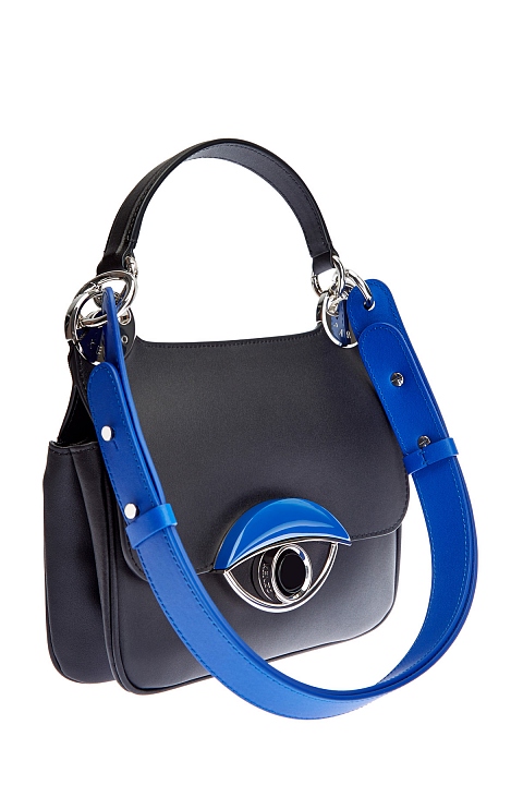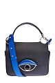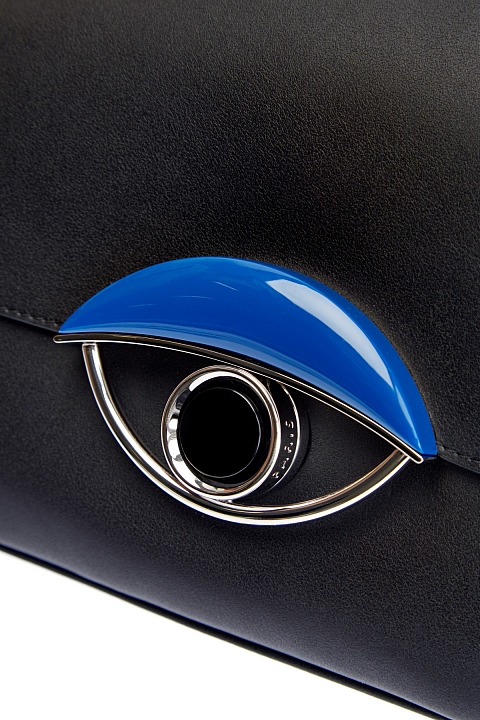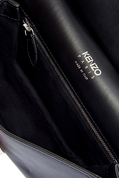 Эффектная женская сумка Tali Medium от Kenzo полностью создана из мягкой фактурной кожи. Модель в универсальном черном цвете с легким матовым блеском идеально подходит для завершения повседневных образов. Объемная вставка с культовым декором Eye из металлического сплава украшает откидной клапан на передней планке. Съемный регулируемый ремень в оттенке лазури придает изделию яркий штрих и обеспечивает дополнительный комфорт. Детали: фурнитура с серебристым напылением, внутренний карман с застежкой на молнию.