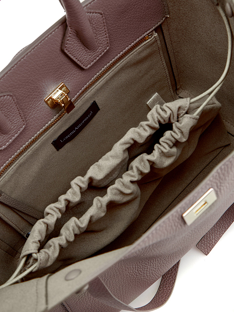 Вместительная сумка-тоут от Lorena Antoniazzi выполнена из мягкой кожи крупнозернистой выделки. Модель ручной работы в холодном пудровом оттенке дополнена регулируемым съемным ремнем, который позволяет носить изделие на плече или кроссбоди. Аксессуар дополнен литой застежкой с золотистым напылением, одинарная ручка завершает минималистичный дизайн. Внутри — мягкая сумка-мешок на кулисках и плоский карман на молнии. Сделано в Италии.
