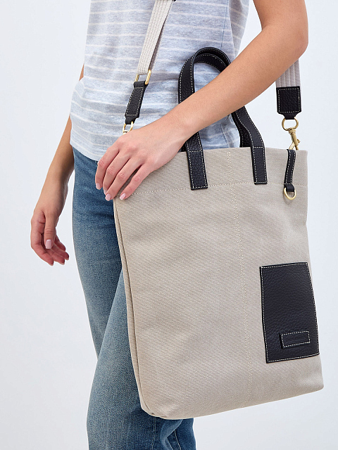 Хлопковая сумка с отделкой из зернистой кожи и съемным ремнем