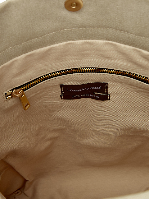 Стильная и вместительная сумка от Lorena Antoniazzi создана из хлопкового канваса, однородный оттенок подчеркивает натуральную текстуру материала. Отделка из крупнозернистой кожи с контрастной прострочкой вносит в образ неформальный штрих. Съемный регулируемый ремень на карабинах позволяет носить модель на плече или crossbody. Лаконичный аксессуар с одним отделением дополнен внутренним карманом на молнии, двойными ручками и креплением для брелока. Сделано в Италии.