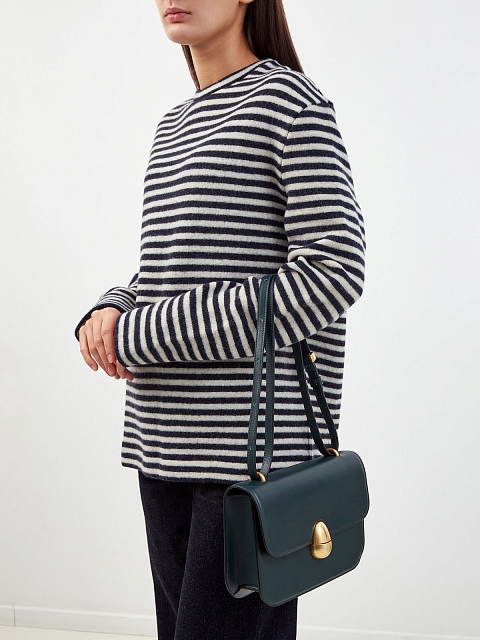 Элегантная сумка Phoenix от Neous создана из гладкой телячьей кожи с матовым финишем. Модель прямоугольной формы в изысканном изумрудном цвете дополнена тонким съемным ремешком. Минималистичный дизайн дополнен крупным замком-защелкой — литая деталь в оттенке винтажного золота перекликается с фурнитурой и придает образу роскошный штрих. Сделано в Италии.