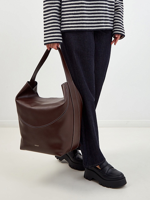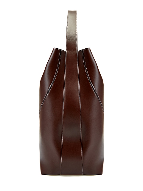 Вместительная сумка-тоут Pavo от Neous создана вручную из роскошной телячьей кожи в оттенке темного шоколада. Модель дополнена структурированной ручкой, которая расширяется, образуя основание сумки, в то время как ее боковые стороны элегантно загибаются внутрь, изменяя форму и пропорции и закрывая ее. Компактный внутренний клатч и контрастная прострочка завершают минималистичный дизайн. Сделано в Италии.