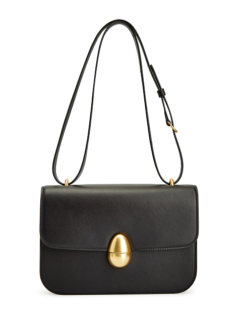 Элегантная сумка Phoenix от Neous создана из гладкой телячьей кожи с матовым финишем. Модель прямоугольной формы в изысканном черном цвете дополнена тонким съемным ремешком. Минималистичный дизайн дополнен крупным замком-защелкой Egg — литая деталь в оттенке винтажного золота перекликается с фурнитурой и придает образу роскошный штрих.