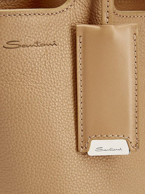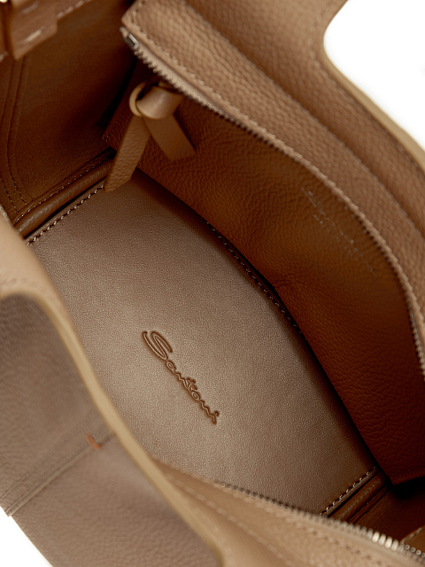 Мягкая и женственная сумка от Santoni станет идеальным дополнением к городскому образу. Изящный дизайн из натуральной крупнозернистой кожи дополнен удобными ручками и регулируемым съемным плечевым ремнем, что делает аксессуар универсальным для любого случая. Детали: брелок с миниатюрным зеркалом, внутренний карман на молнии, тисненый логотип. Сделано в Италии.
