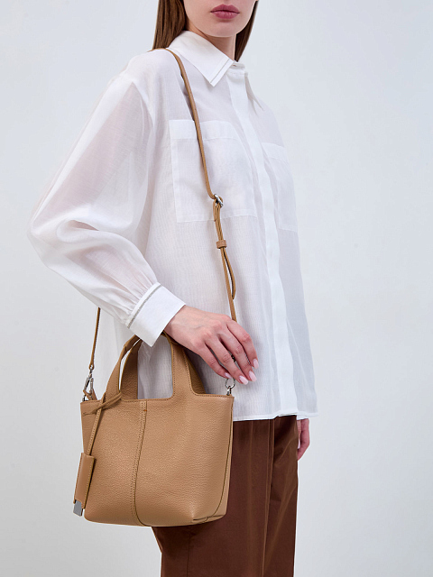 Кожаная сумка с брелоком-зеркалом и съемным ремнем