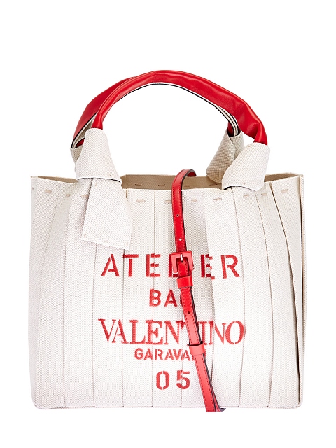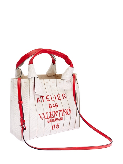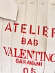 Эффектный тоут Atelier Bag от Valentino Garavani выполнен вручную из прочной бежевой парусины. Трафаретный принт "Atelier Bag Valentino Garavani 05" и контрастная кожаная отделка вносят в образ урбанистический штрих. Расслабленный стиль аксессуара подчеркивают крупные заложенные складки и регулируемый плечевой ремень. Внутри — съемная косметичка фирменного оттенка Rosso. Сделано в Италии.